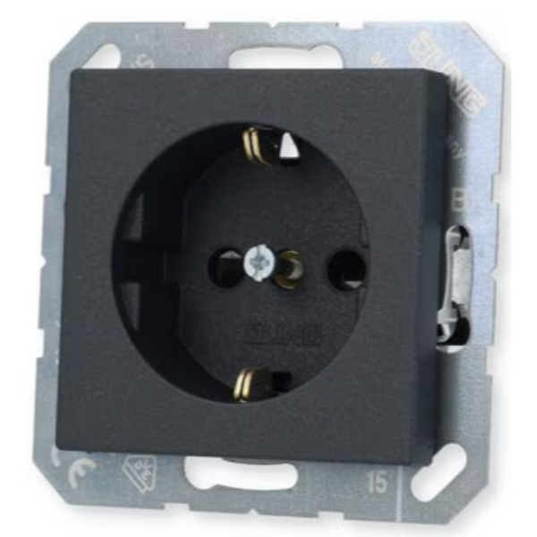 Jung A500 wandcontactdoos met randaarde, kinderveilig antraciet - A1520NBFKIANM