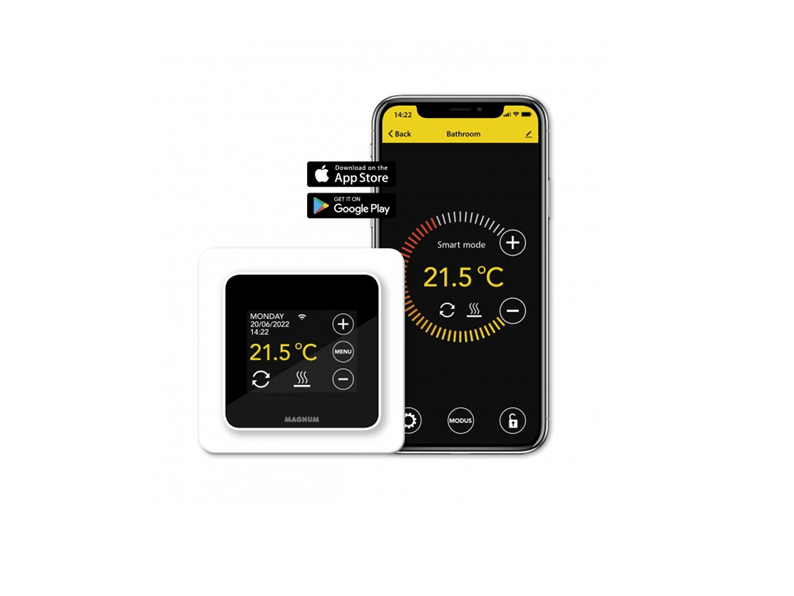 Magnum Millimat set elektrische vloerverwarming, (lxb) 14000x500mm, toepassing vloerverwarming (bijverwa, oppervlakte 7m², vermogen 150W/m², aansluitspanning 230V, met ruimtethermostaat, met vloertemperatuursensor, geschikt voor vochtige ruimten, uitvoering thermostaat dig. klok (inb.).