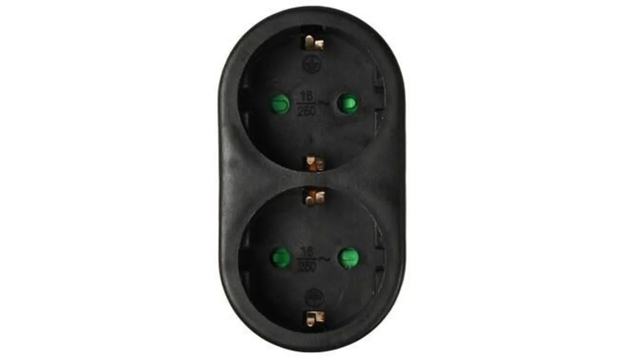 Stopcontact splitter 2 voudig zwart verticaal met randaarde - 226659