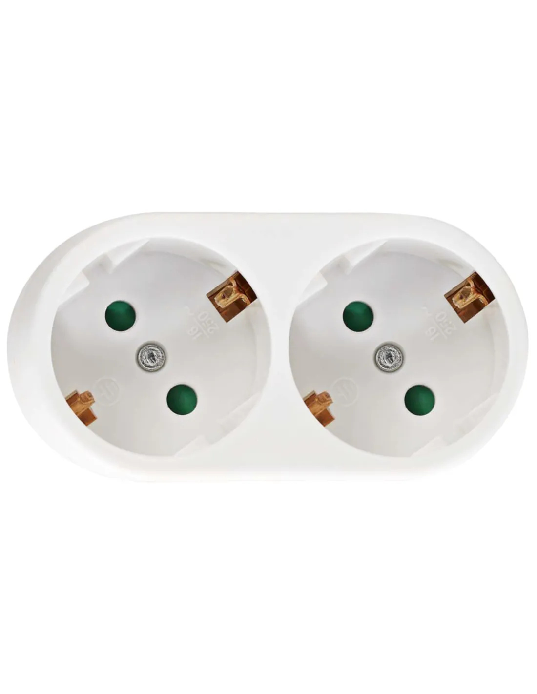 Stopcontact stekker 2 voudig wit horizontaal met randaarde - 226656