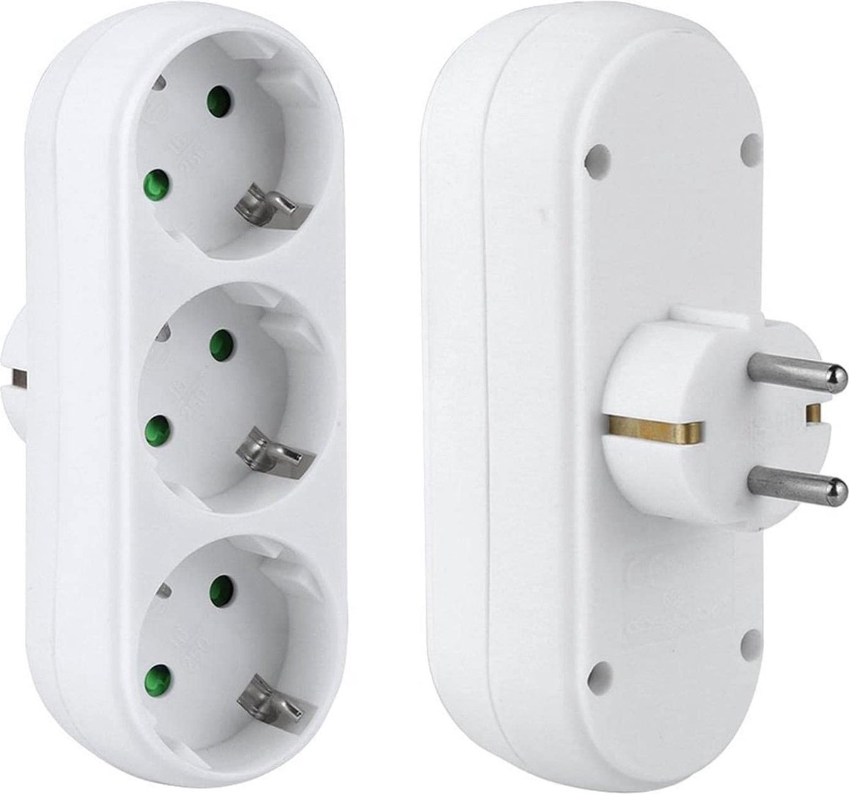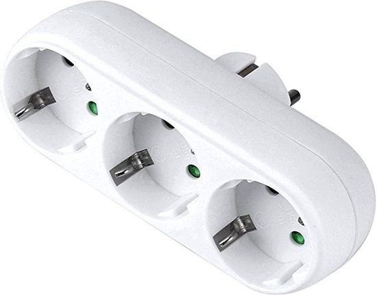Stopcontact stekker 3 voudig wit horizontaal met randaarde - 226660